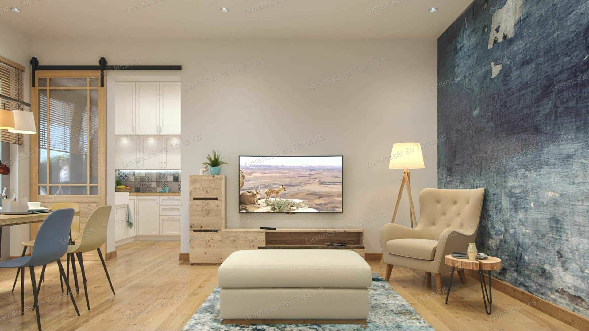 -tágas nappali + konyha