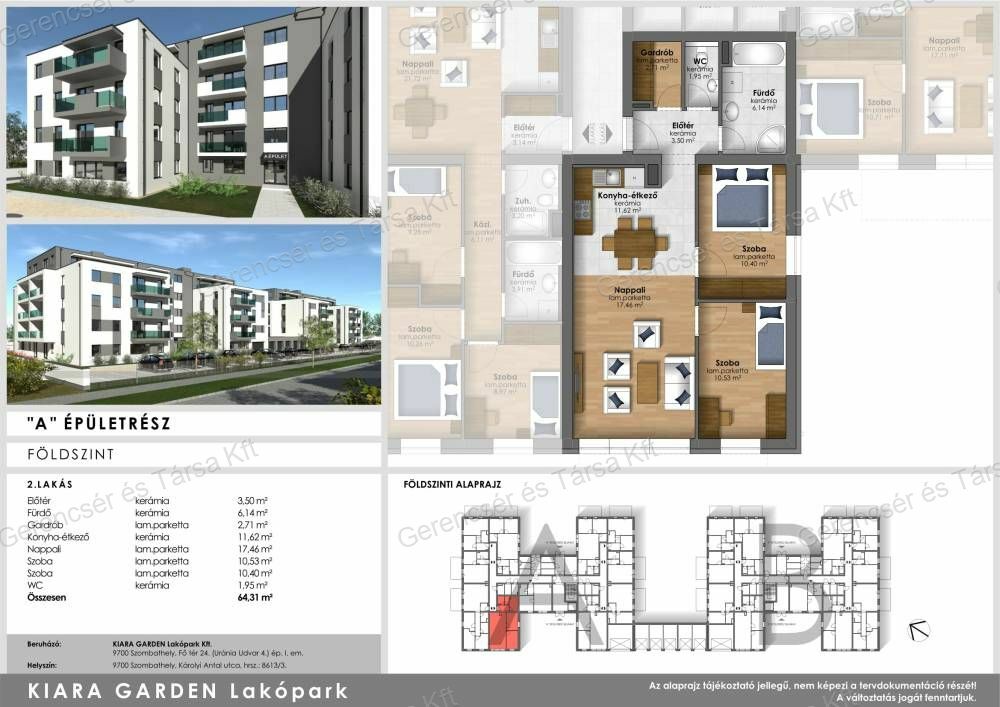 Nappali + 2 szoba+gardróbos, földszinti új építésű lakás a Kiara Gardenben